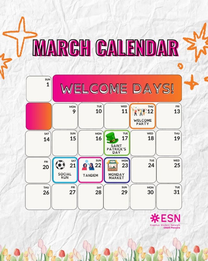 We at ESN Chieti Pescara have planned an exciting calendar of events to help you embrace the new season with great vibes and unforgettable moments.