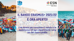 Possiamo inoltre anticiparvi che noi di ESN Chieti Pescara e lo staff dell'Ufficio Relazioni Internazionali dell'Ateneo terremo un incontro online il 2 marzo per illustrare il bando e per dare agli studenti la possibilità di porre tutte le domande necessarie.