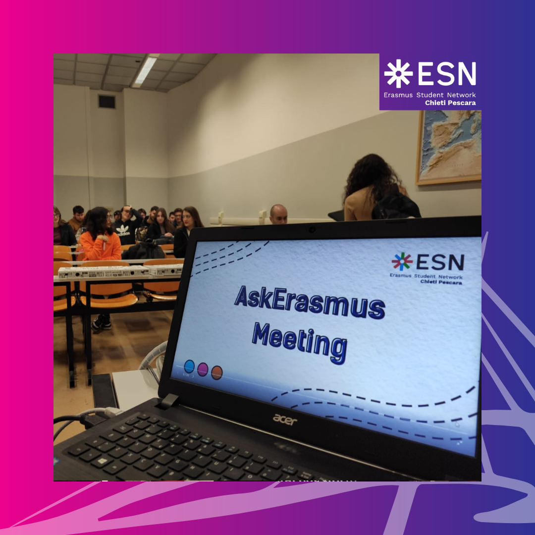 L'ufficio Erasmus con ESN Chieti Pescara organizzano gli AskErasmus Meetings, incontri informativi sul Bando Erasmus 2024/2025.