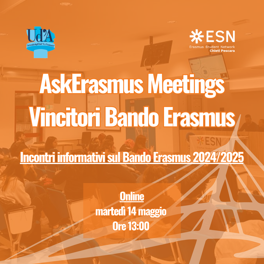 ESN CH PE insieme al Settore Erasmus organizzano un incontro informativo per i vincitori del Bando Erasmus per chiarire dubbi e rispondere a tutte le vostre domande!!