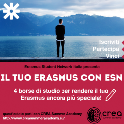 SONO APERTE LE ISCRIZIONI per il concorso "Il Tuo Erasmus con ESN" che assegnerà 4 borse di studio del valore di 500€ ciascuna.