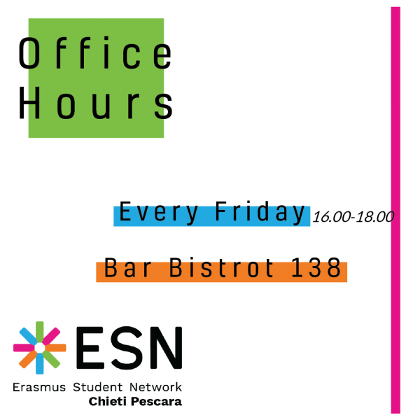 In the meanwhile, we will offer our front desk office EVERY FRIDAY from h.16.00 to h.18.00 in bar Bistrot 138 (Viale Marconi 138 Pescara).