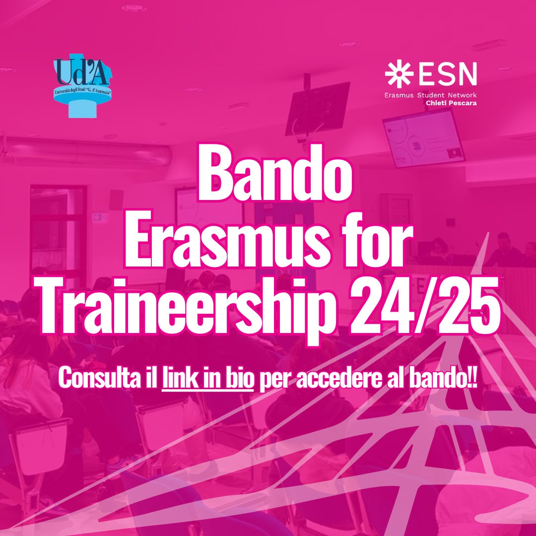 E' stato pubblicato il bando per la mobilità Erasmus for Traineership per l'anno accademico 2024/2025!!