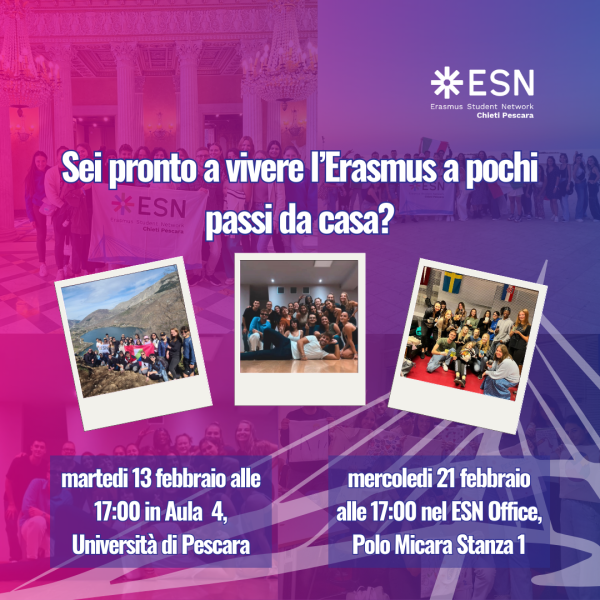 In queste giornate,vi spiegheremo cos'è ESN e tutte le informazioni per vivere a pieno la vita associativa!